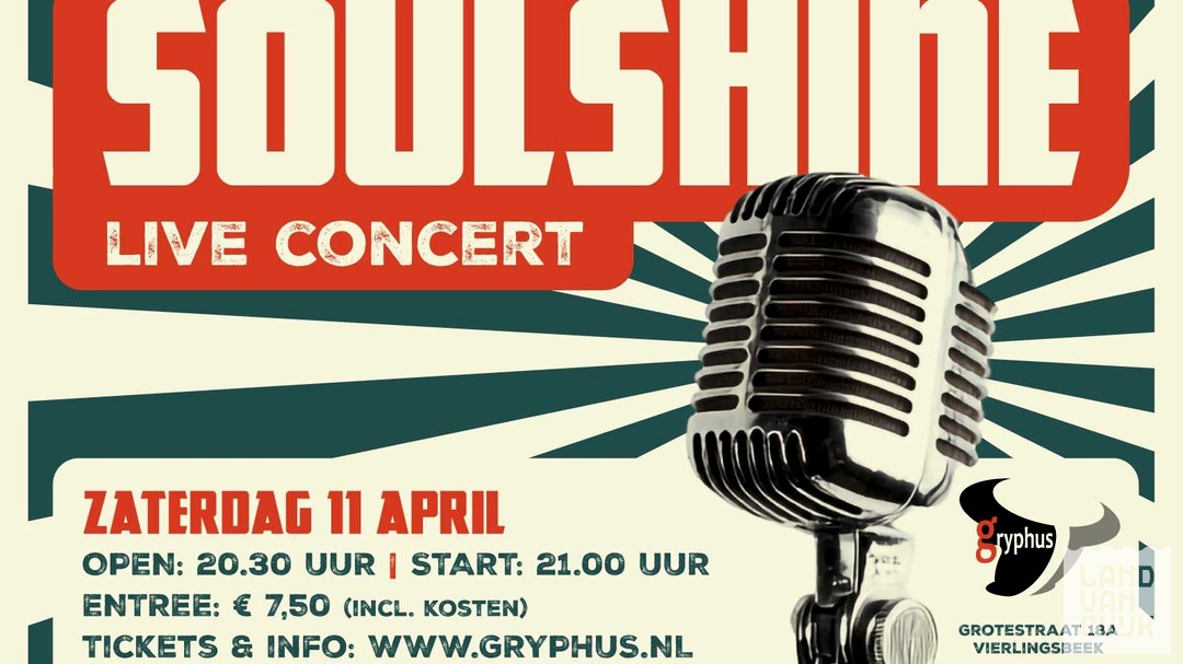 Uit een liefde voor de soulmuziek hebben zeven enthousiaste en ervaren muzikanten uit Vierlingsbeek en omgeving de stemmen en instrumenten bij elkaar gestoken om een band te starten: SoulShine. Wij herkennen onze (oud) dorpsgenoten Frenk van Aggelen (toetsen), Pleun Janssen (zang), Maartje Euwens (zang) en Henk Koppes (drums). Aangevuld met Elisa van Elst (zang), Marcel Kuipers (bas) en Rudy Ehren (gitaar) vormen zij een dynamisch en lekker swingend geheel.