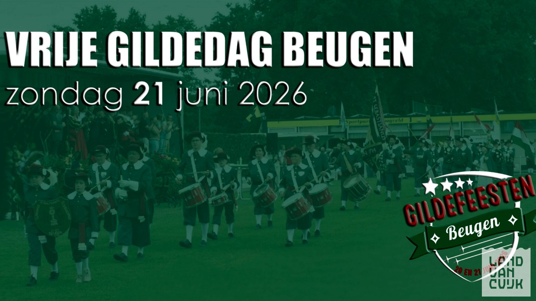 Dit jaar heeft het Beugens Gilde de eer om de jaarlijkse Gildedag van de Kring Land van Cuijk te organiseren. De Gildedag zal zondag 21 juni 2026 plaatsvinden op en rondom het voetbalveld van Beugen. Op deze dag zullen er zo’n 1000 Gildeleden in Beugen samenkomen. Met een optocht door de straten van Beugen, diverse wedstrijden en muziek in de grote feesttent belooft dit een mooi feest te worden.