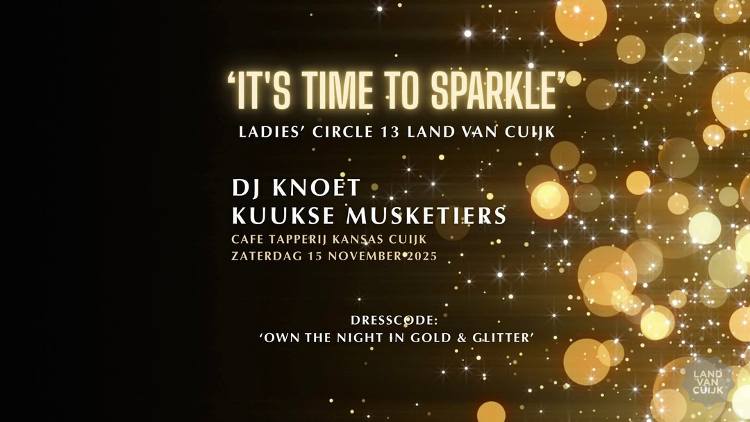 Op zaterdag 15 november vanaf 20.00 uur organiseert Ladies' Circle 13 Land van Cuijk opnieuw een spetterend feest in de Kansas — dit jaar helemaal in het thema: It’s time to sparkle!