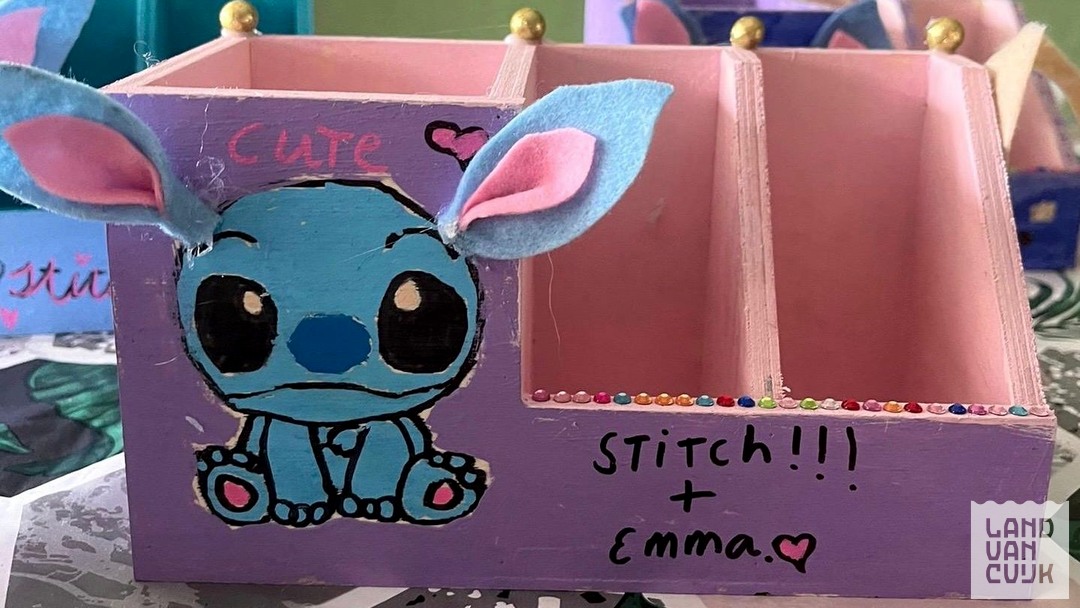 Ook Stitch blijft populair! In de carnavalsvakantie kun je een handig Make-up/Pennenbakje komen maken. Houd je niet van Stitch, dat maakt niet uit. Dan mag je ervan maken wat je wilt! Kom je ook?