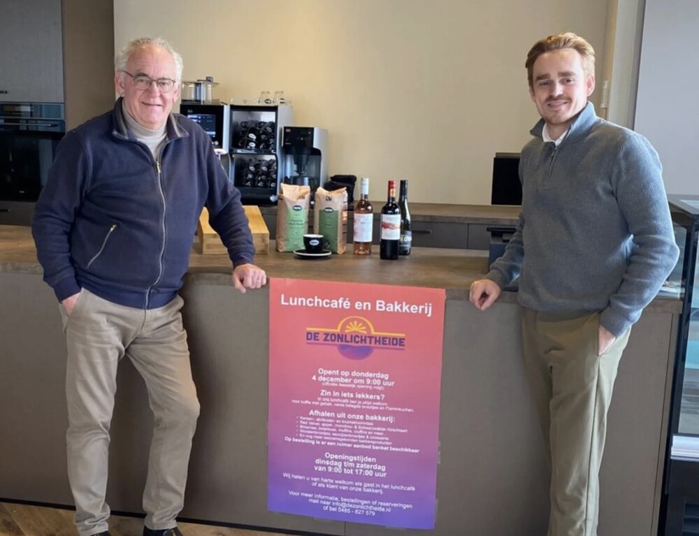Lunchcafé De Zonlichtheide op Zandstraat 58 is vanaf donderdag 4 december in bedrijf. Op de hoek naast de HEMA, lekker centraal gelegen vind je dit lunchcafé van initiatiefnemers vader Huub en zoon Pim Niessen. Gennep is een fraaie ontmoetingsplaats én een werkplek voor mensen met afstand tot de arbeidsmarkt rijker.