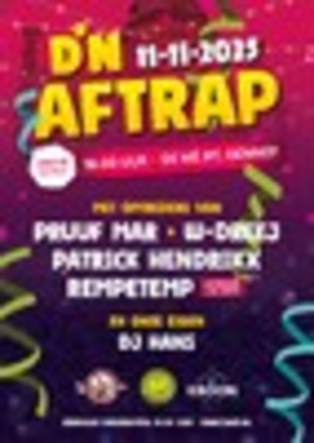Als klap op de vuurpijl is de 11e van de 11e weer het populaire feest D'n Aftrap op de Markt; een avond met live artiesten, carnavalsmuziek en gezelligheid. Deze avond wordt georganiseerd door Hotel de Kroon, Café de Typhoon en Vastelaovendclup 't Bombakkes. De entree is gratis en iedereen komt verkleed. Open vanaf 18.00 uur, aanvang programma 19.00 uur.